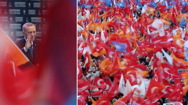 Partisince Sultangazi'deki Sultançiftliği Merkez Camisi'nin önünde düzenlenen mitingde halkı selamlayan Cumhurbaşkanı Erdoğan, Cengiz Kurtoğlu'nun "Duyanlara Duymayanlara" şarkısına eşlik etti.