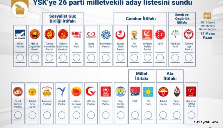 Yüksek Seçim Kurulu Başkanı Ahmet Yener, 14 Mayıs'ta yapılacak 28. Dönem Milletvekili Genel Seçimi için 26 siyasi partinin aday listesi sunduğunu bildirdi.