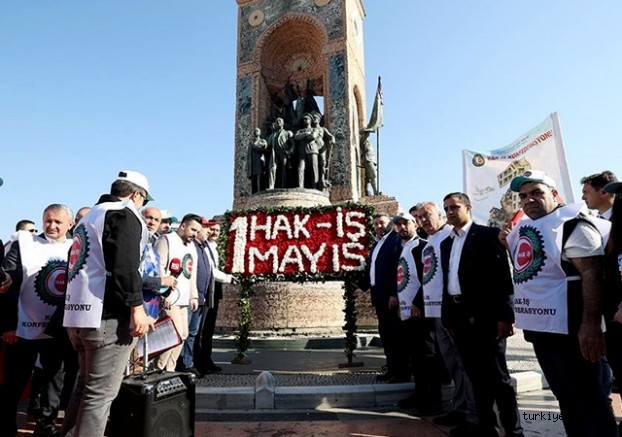 Türkiye İşçi Sendikaları Konfederasyonu (Türk-İş), 1 Mayıs Emek ve Dayanışma Günü dolayısıyla Taksim Cumhuriyet Anıtı'na çelenk sundu.