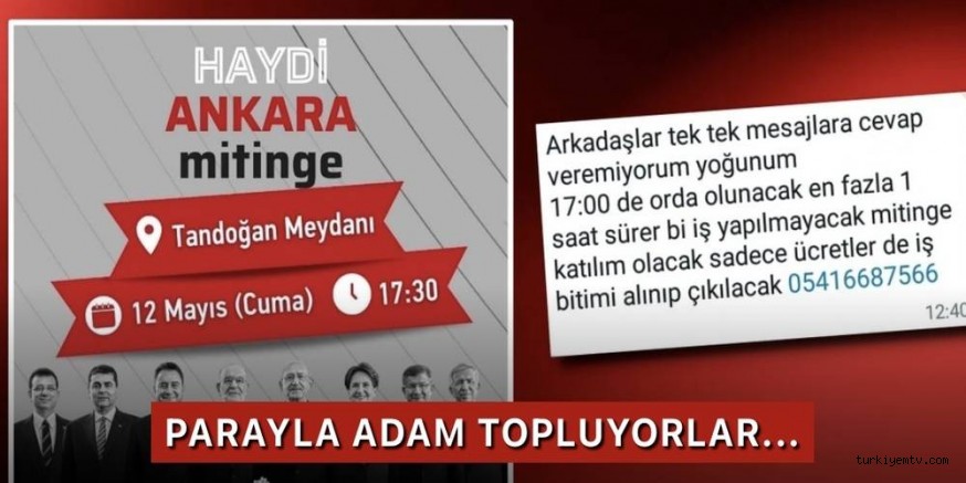 Başta Ankara Büyükşehir Belediyesi olmak üzere belediyeler, yardım yaptırkları vatandaşlara 1 saat miting alanında olmak karşılığında 160 TL vereceklerini duyuruldu.