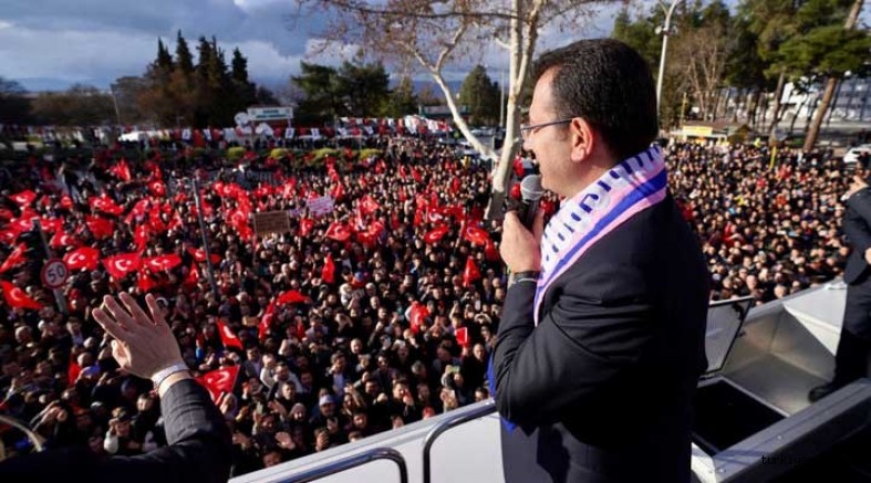 İmamoğlu, şöyle devam etti: "Hep birlikte bunu 2019’da başardık. Milletimiz iradesini ortaya koydu. İstanbul’da halkımızla birlikte bütünleştik ve seçim kazandık. Dediler ki, ‘Biz yan çiziyoruz. Seçimi size vermeyeceğiz.’ Kime? Milletimize vermeyecekmiş. Milletimiz ne yaptı? Milletimiz, 13 bin oy yerine, 806 bin oy fark attı. Bunun adı, okkalı bir demokrasi tokadı. O gün biz geleceği okuyamadık ama birileri okudu. Hatırlayın. Ne dediler? Ya da ne dedi? İster ‘dedi’, ister ‘dediler’; fark etmez. ‘İstanbul'u kazanan Türkiye'yi kazanır’ dediler. Ya da ‘İstanbul'u kaybeden Türkiye'yi kaybeder’ dediler. O günden anlamışlar. Şimdi milletimizin , Türkiye'yi de kazanma vakti geldi. Hep birlikte kazanacağız. Bu seçimin kaybedeni, bir kişi ya da bir avuç insan olacak. Seksen altı milyon kazanacak.”