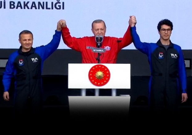 Erdoğan, "Uluslararası uzay istasyonuna gidecek Alper Gezeravcı kardeşimiz, Hava Kuvvetleri Komutanlığımızda önemli başarılara imza atmış kahraman bir Türk pilotumuz. Tuva Cihangir Atasever kardeşimiz de Roketsan'da uzay fırlatma sistemleri alanında çalışan bir sistem mühendisimiz." diye konuştu.